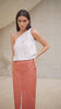 The Cruzy top is an elegant halter top with a playful striped pattern, perfect for sunny days. Its flattering halter design accentuates the shoulders and creates a light, stylish look. Ideal to wear on its own or layered with a jacket or cardigan for a casual-chic outfit.